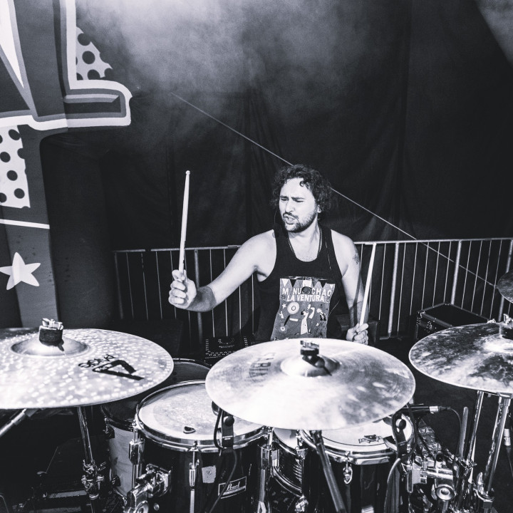 Thorbens Schlagezugspiel bringt unsere Musik nach vorne. Er rief Ende 2021 das Tribute Projekt ins Leben, das in den ersten drei Jahren unter dem Arbeitstitel "Die Toten Hoden" auftrat. Er selbst trommelt bereits seitdem er 10 Jahre alt ist und liebt es seine Freunde am Rhythmus unter die Leute zu bringen.